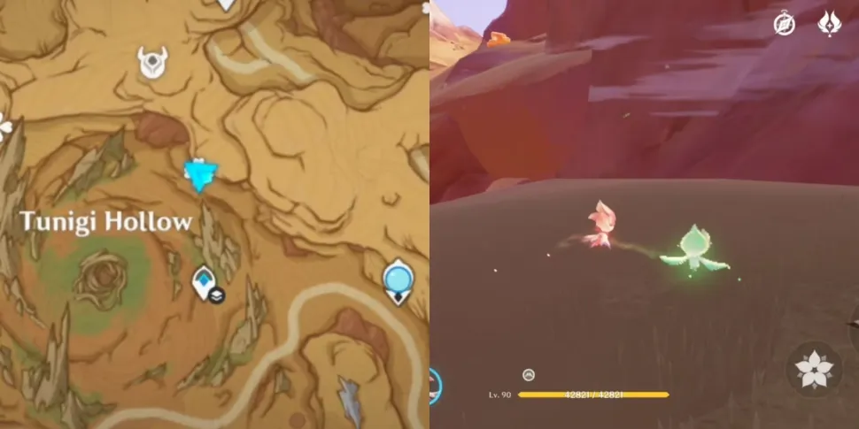 Следуйте по маршруту, пока игроки не найдут несколько Хилихурл вокруг котла для приготовления пищи. Там будет маршрут, по которому можно добраться до дерева Фраваши. Как и в первой локации, остаток Пари в этом месте также хочет, чтобы путешественники собрали несколько цветов Удумбара в Genshin Impact.
