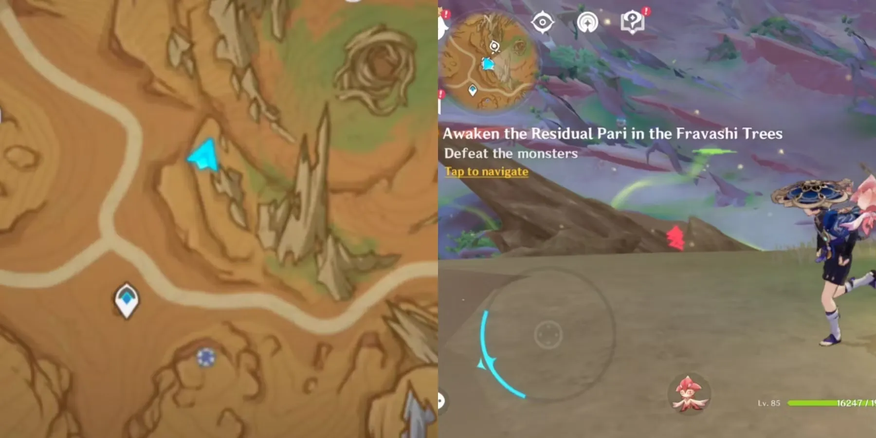 Следуйте по маршруту, пока игроки не найдут несколько Хилихурл вокруг котла для приготовления пищи. Там будет маршрут, по которому можно добраться до дерева Фраваши. Как и в первой локации, остаток Пари в этом месте также хочет, чтобы путешественники собрали несколько цветов Удумбара в Genshin Impact.