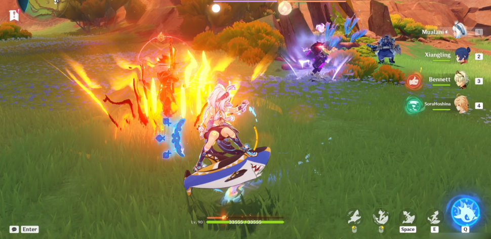 Телепортируйтесь к путевой точке на холме Хуитцтли и отправляйтесь на юго-запад через водоем, чтобы найти 3 врагов-фатуев. Как и у любого другого местного врага, их ATK очень высок, а когда один из них будет повержен, они создадут элементальное поле, которое со временем будет наносить урон вашему персонажу.