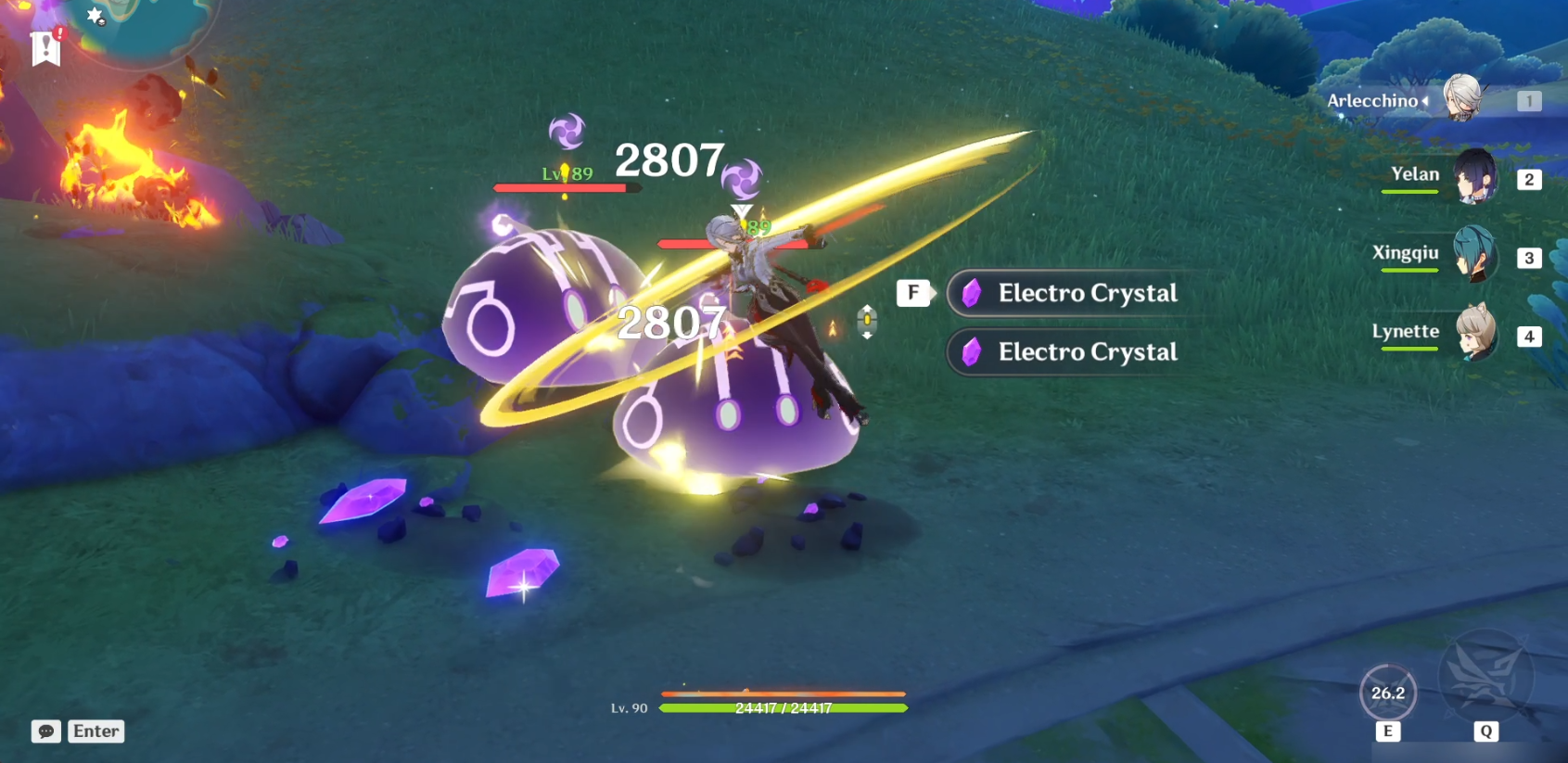 Телепортируйтесь к статуе Семерых в водах Амеялко и отправляйтесь на юго-восток к арене у берега. Врагов там пока нет, потому что вам нужно уничтожить все электрокристаллы, используя пироатаки. Когда некоторые кристаллы будут уничтожены, появятся электрослимы, но это не местная легенда.