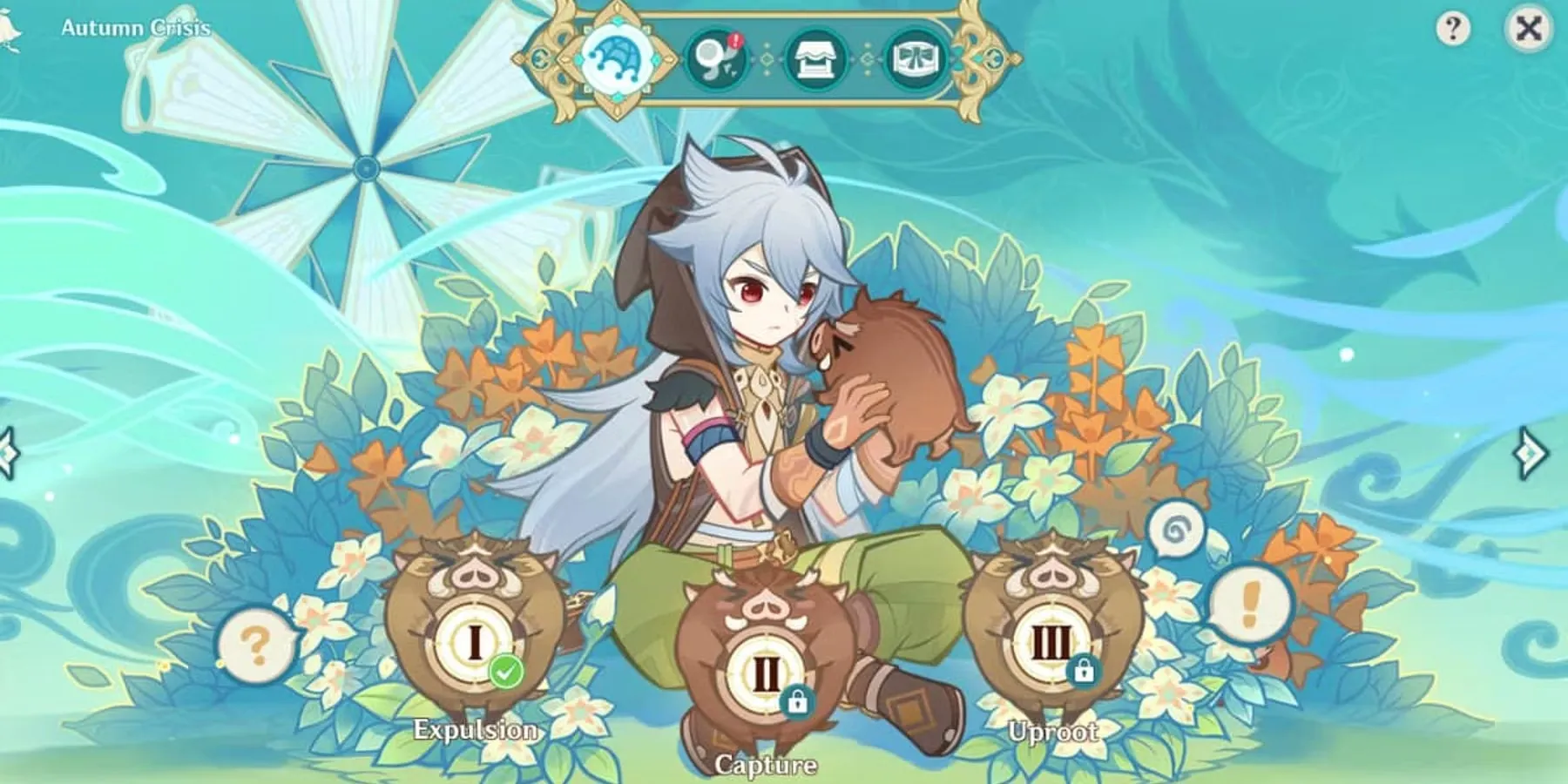 В игре Осенний кризис игрокам предстоит объединиться с охотниками из Спрингвейла и ученым из Сумеру, чтобы справиться с внезапным наплывом кабанов и других диких животных. Они доставляют неприятности фермерам и тем, кто выращивает урожай в этом районе, поэтому их нужно отогнать. В игре Осенний кризис есть три этапа: изгнание, захват и выкорчевывание.