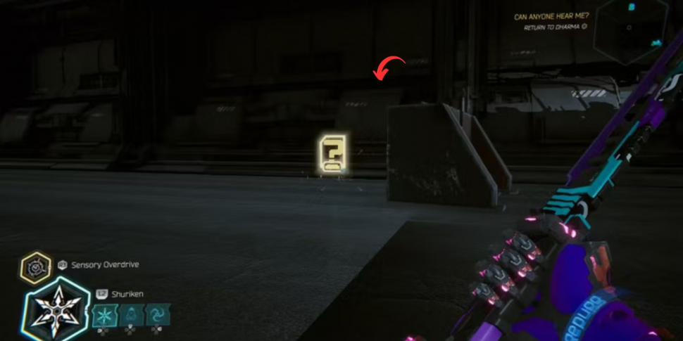Получив Голотата, игроки должны повернуться и увидеть ящик. Ударьте по этому ящику сюрикеном и пройдите через дверь, чтобы получить ЭМИ-гранату.