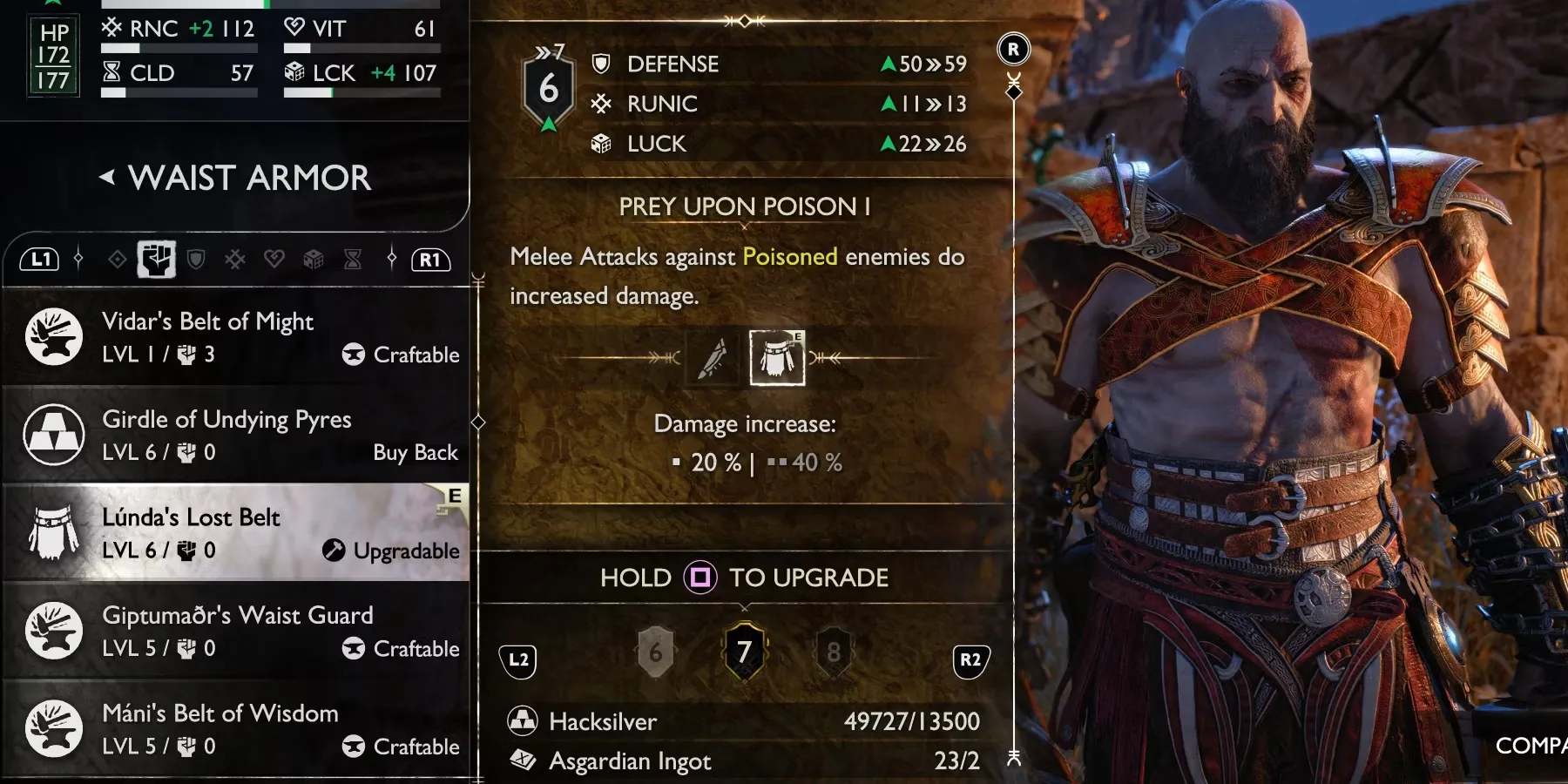 Асгардские слитки используются в основном для изготовления и улучшения доспехов у Синдри и Брока. Лунда также может изготавливать предметы из асгардских слитков. Наглядный пример этого показан на изображении выше, где улучшение Потерянного пояса Лунды до 7 уровня стоит два асгардских слитка и 13 500 Hacksilver.