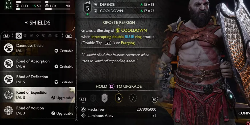 Как и многие другие ресурсы, светящийся сплав используется для ремесел. Будь то один из многих комплектов доспехов или наконечники для оружия, игроки God of War Ragnarok могут взять светящийся сплав для Синдри и Брока для любого ремесла, которое необходимо выполнить. Наглядный пример этого показан выше. Чтобы улучшить Ронд экспедиции с 5-го до 6-го уровня, игрокам понадобится один светящийся сплав и 5 000 Hacksilver.