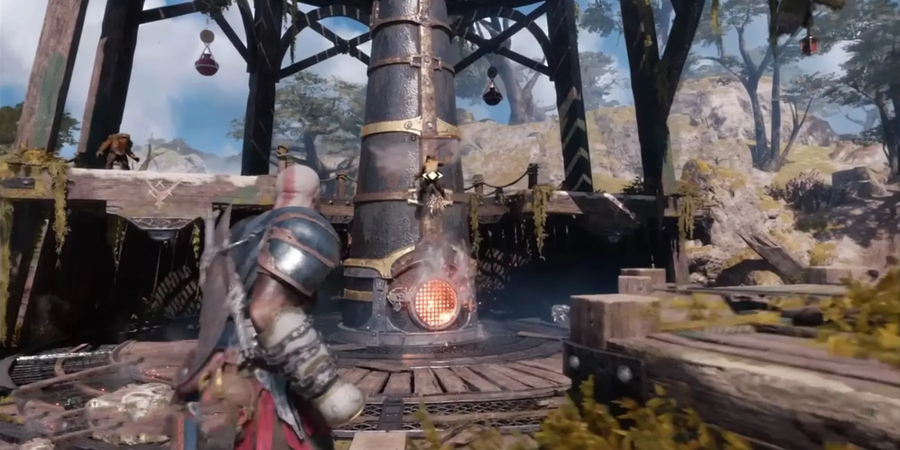 Как только игроки доберутся до установки, ее будет защищать орда врагов, и Кратос должен победить их, чтобы получить возможность взаимодействовать с установкой.
