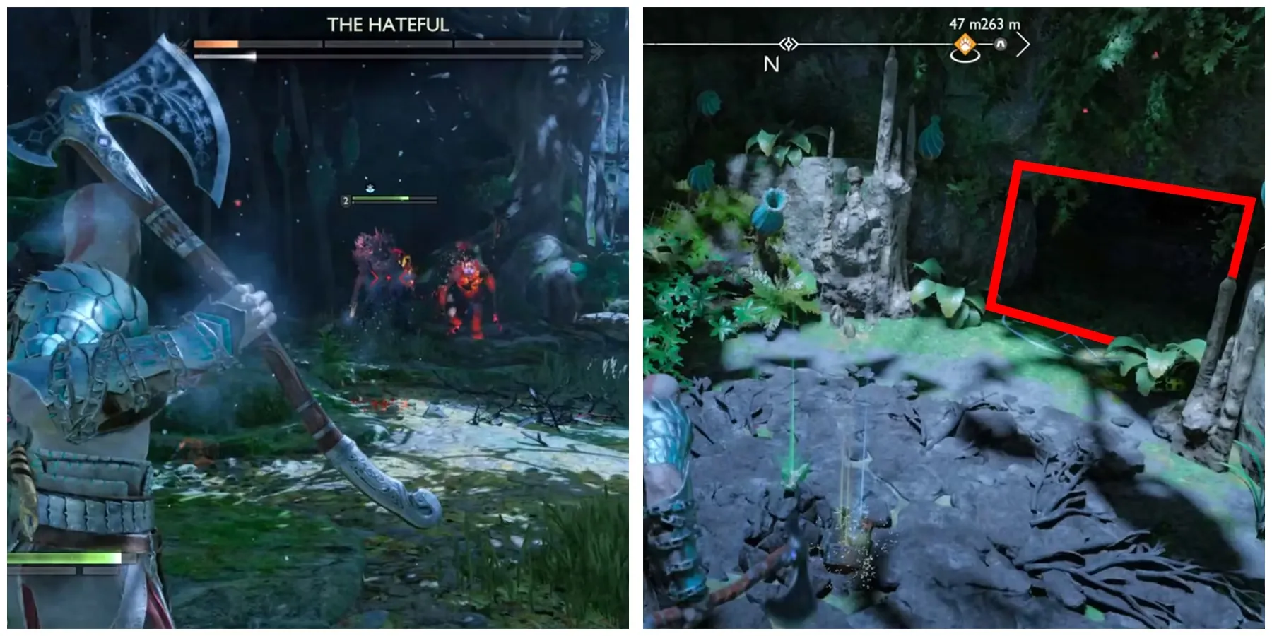 После того как вы немного изучите местность, снова направьтесь налево и перейдите мост, чтобы найти дыру Драугра. Сразитесь с Ненавистным вместе с другими слабыми врагами, чтобы запечатать дыру. Как только бой будет завершен, пройдите в туннель прямо за дырой Драугра.