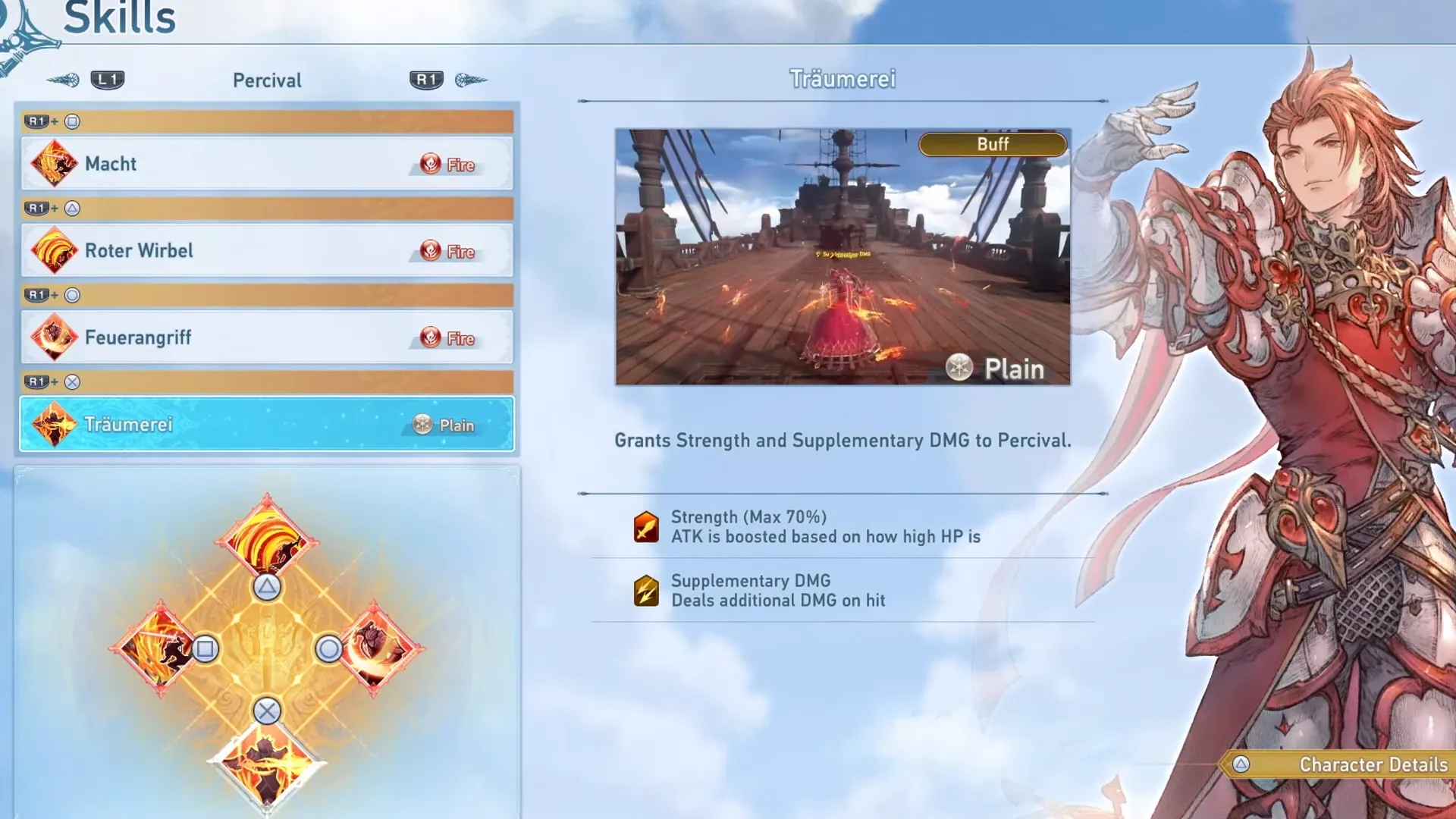 Персиваль - персонаж, использующий атаку зарядом, одноручный меч и стихию огня. Это персонаж, который сильно представлен во франшизе Granblue Fantasy, и с ним приятно играть в Granblue Fantasy: Relink.