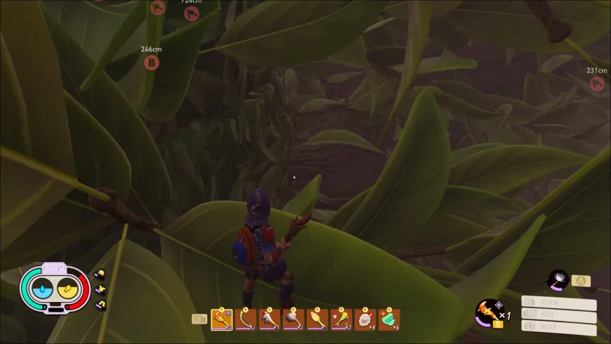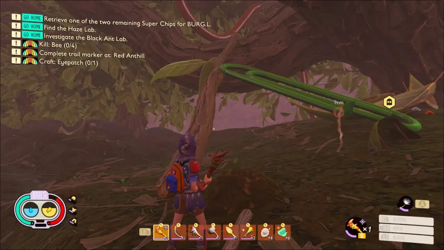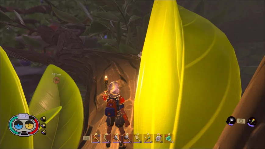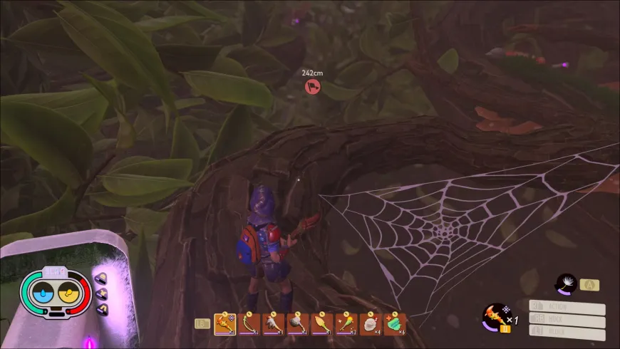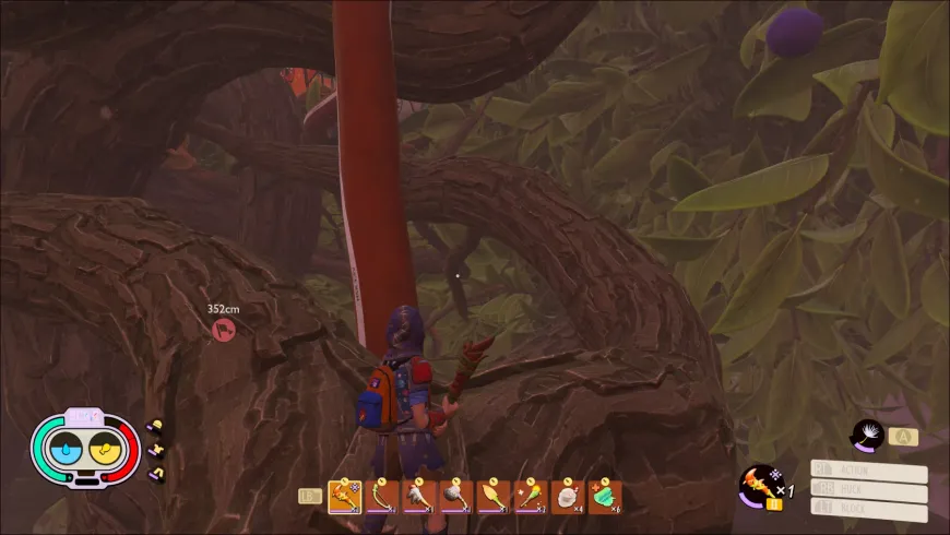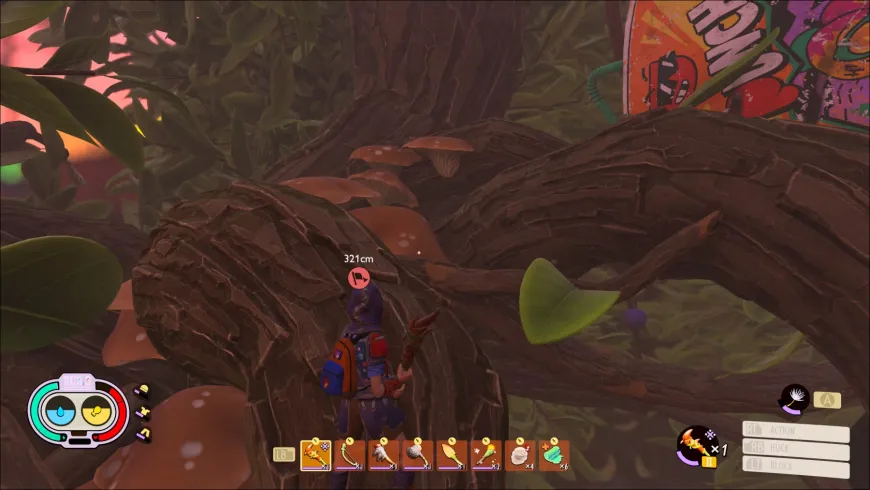 - После поворота поверните направо и следуйте по более толстой ветке в сторону коробки с соком, используя грибы, чтобы добраться до объекта.