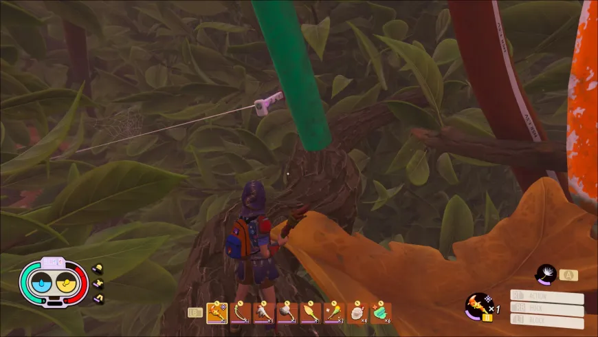 - Следуйте по этой ветке, чтобы попасть на Птичью купальню в Наземной части, избегая листьев по мере необходимости.