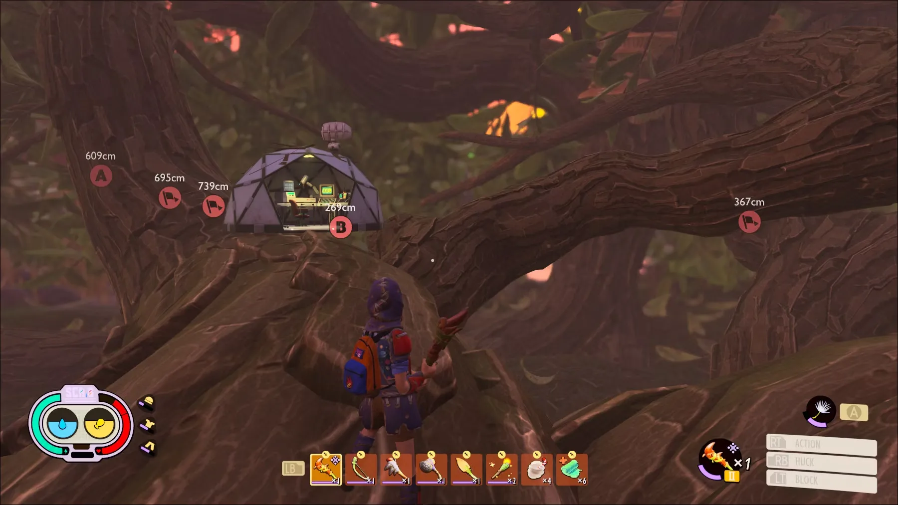 - После поворота поверните направо и следуйте по более толстой ветке в сторону коробки с соком, используя грибы, чтобы добраться до объекта.