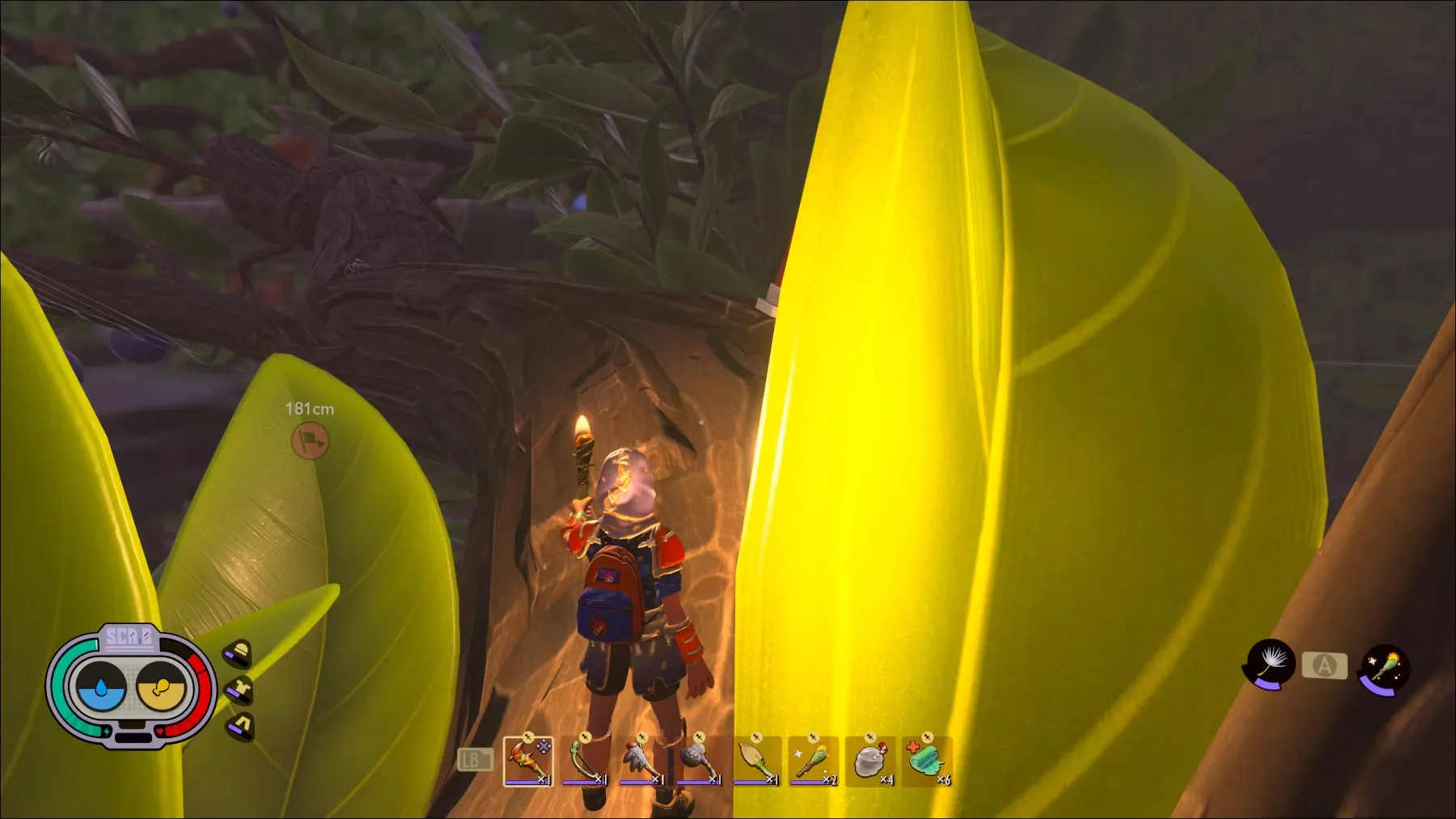 - Следуйте по этой ветке, чтобы попасть на Птичью купальню в Наземной части, избегая листьев по мере необходимости.