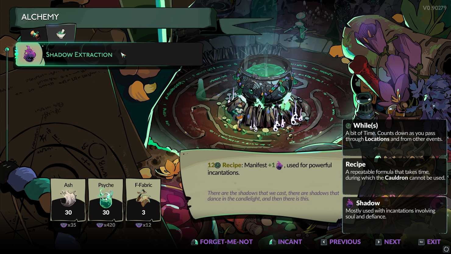 Когда у вас будут все материалы, сотворите Тень в котле, и вам придется подождать некоторое время, пока она не закончится.