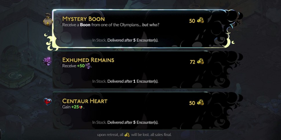 Как и в случае с колодцем Харона, вы можете в конечном итоге разблокировать Алтарь Гермеса с помощью заклинания, которое позволит ему доставлять вам все виды предметов после того, как вы пройдете определенное количество встреч (или заплатите дополнительное золото, чтобы доставить их немедленно). Психика снова является одним из предметов, которые он может предложить. |