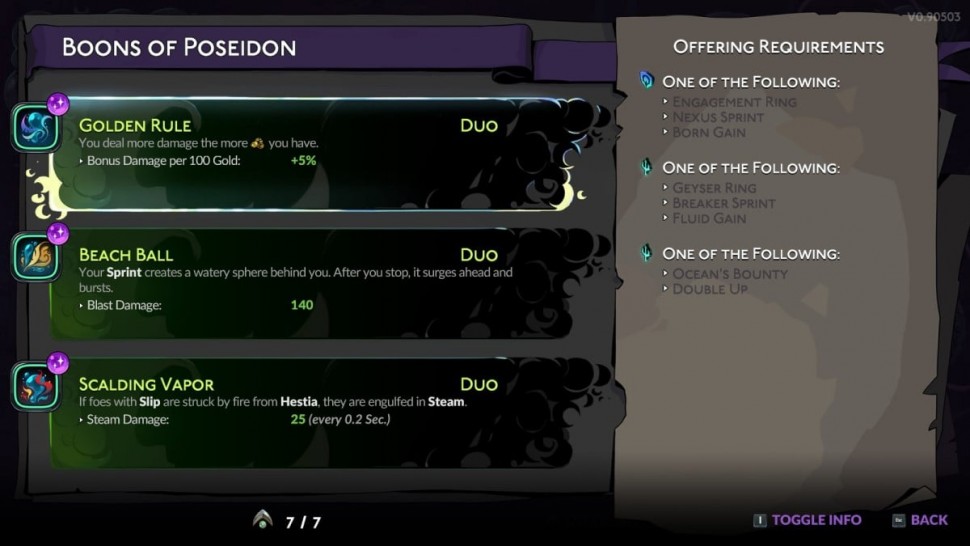 Золотое правило работает примерно так же, как и Сердечный аппетит: вы получаете урон за каждый имеющийся у вас ресурс. За 100 золотых вы получаете только плюс пять процентов урона, но контролировать свой кошелек гораздо проще, чем полоску здоровья. Если не покупать много ресурсов у Харона и сосредоточиться на выгодных вариантах сбора золота, таких как Арканы или Оберег Харона, можно получить 50-100-процентные баффы урона. Однако цена, простите за каламбур, довольно велика, ведь Харон - отличный источник дааров и улучшений. Взвесьте затраты и выгоды от потери пяти процентов урона для любого дара, который вы подберете.