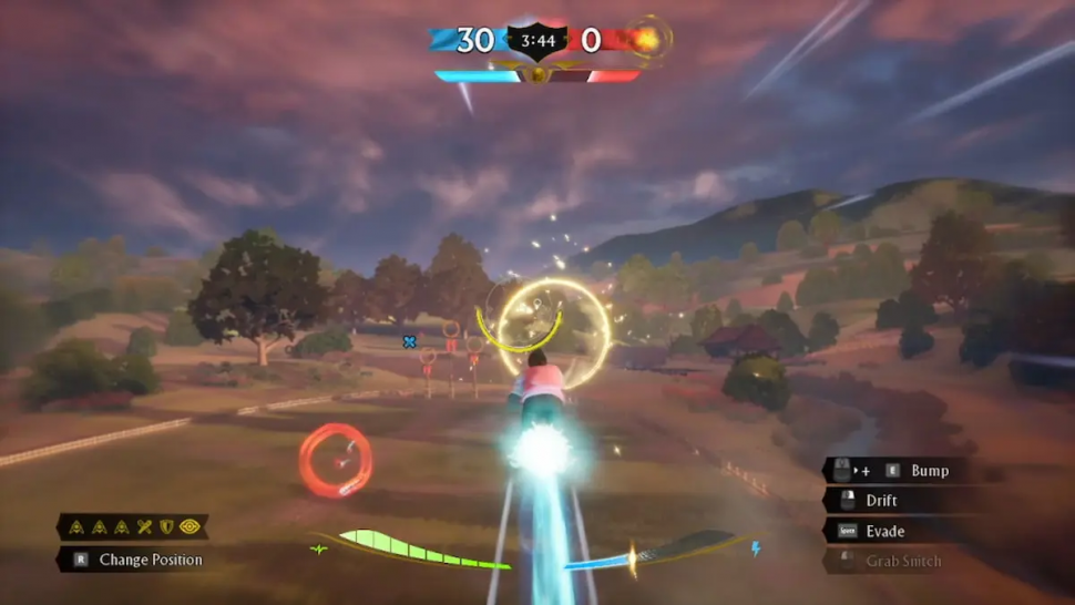 Если вражеский преследователь подбирается к вам слишком близко, вы можете сделать рискованный ход - столкнуть его, нажав E и направив курсор в его сторону, чтобы замедлить его и увеличить ваши шансы на то, чтобы приблизиться к золотому снитчу. Если вы пропустите удар, то потеряете темп, и не сможете использовать его в критические моменты, чтобы получить преимущество в погоне.