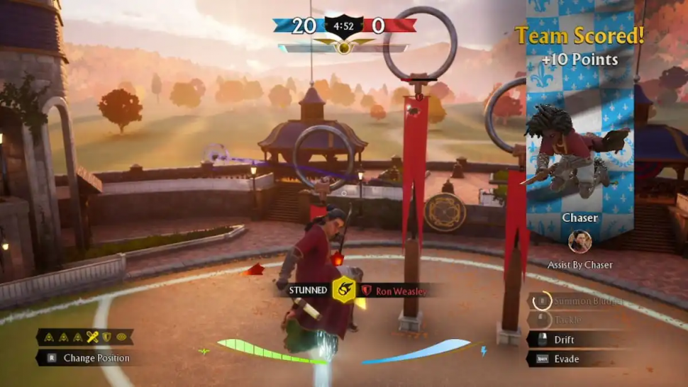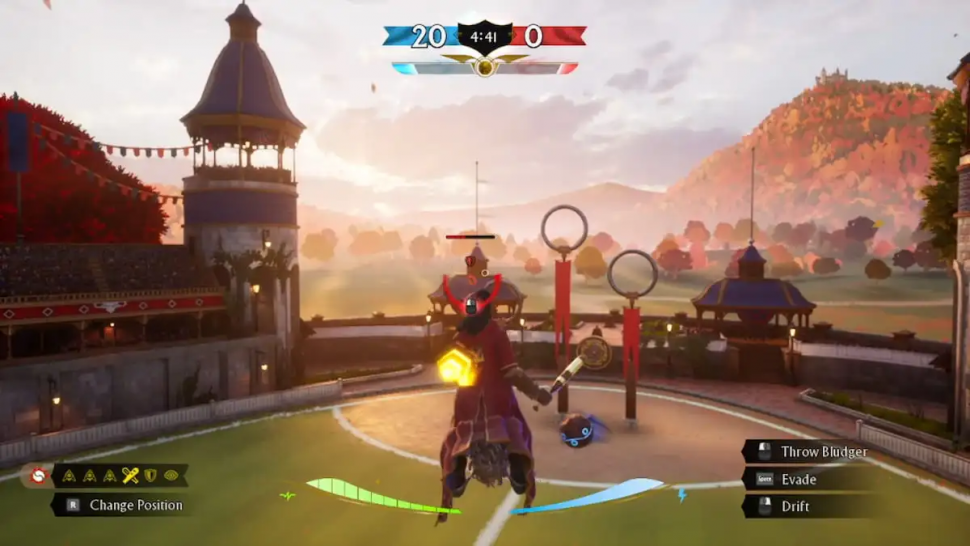 Пока ваши товарищи по команде объединяются для получения очков, усложните жизнь противнику, нанося ему удары с помощью бладжеров. Вы можете вызвать бладжер, нажав E или Y/Triangle на контроллере. Вам нужно зацепиться за врага, сократив дистанцию с ним, и не отводить взгляд. Затем щелкните левой кнопкой мыши, чтобы запустить бладжер и ударить по игрокам, чтобы временно оглушить их.