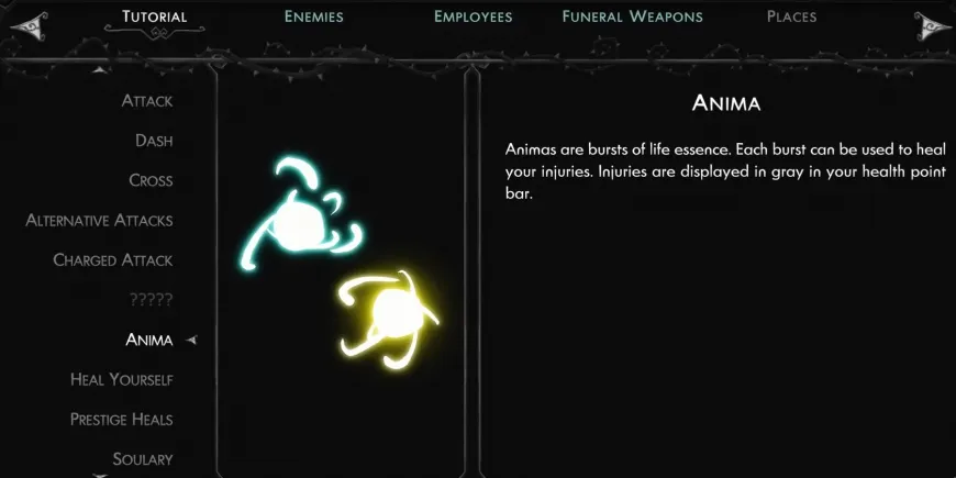 Основным методом лечения в игре Have a Nice Death является использование анимы. Анима появляется либо в виде светло-голубой сферы, либо в виде золотой сферы (называемой золотой анимой). Синяя Анима может исцелить любую часть полоски здоровья, которая имеет серый цвет. Если часть полоски здоровья исчезла, обычная Анима не сможет ее исцелить. Для этого потребуется Чистое исцеление от Золотой Анимы. Чистое исцеление - это эффект, который восстанавливает здоровье, исцеляет раны и может восстановить максимальное количество утраченного здоровья.