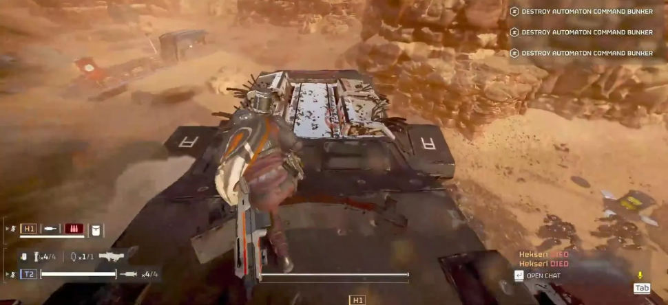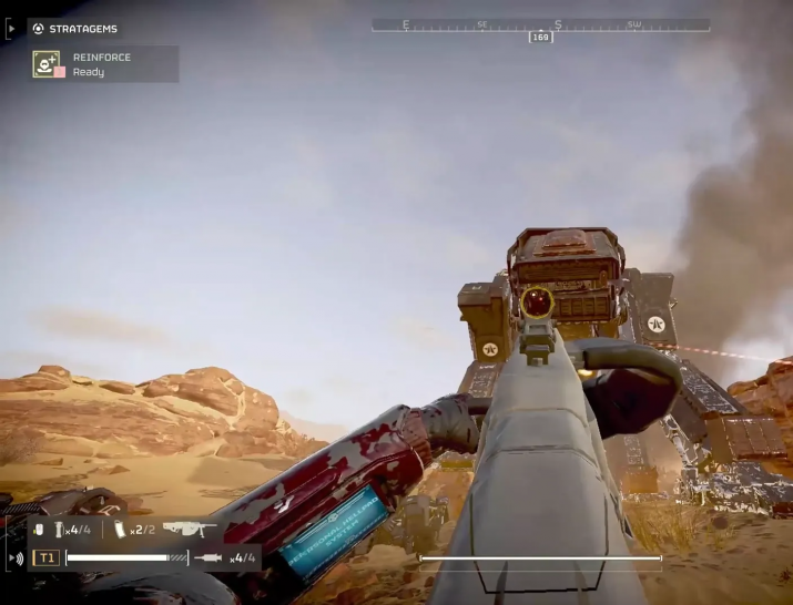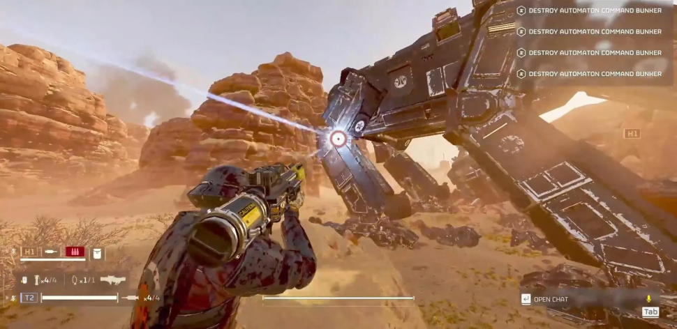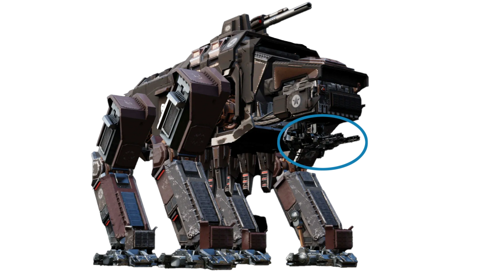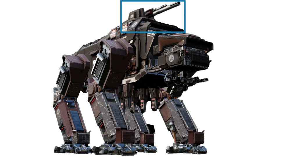 - Пушечная турель: Это грозное орудие находится на вершине страйдера и может быть уничтожено тяжелым пробивным оружием. Пары ракет из EAT, безоткатной винтовки или недавно добавленной квазарной пушки будет достаточно. Для тех, кто предпочитает точность, Копье может вывести его из строя одним метким выстрелом, попав прямо в слабые места.