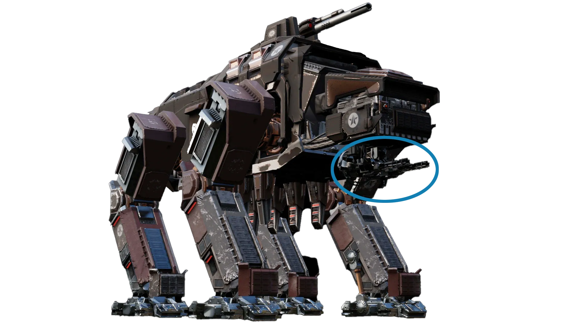 - Пушечная турель: Это грозное орудие находится на вершине страйдера и может быть уничтожено тяжелым пробивным оружием. Пары ракет из EAT, безоткатной винтовки или недавно добавленной квазарной пушки будет достаточно. Для тех, кто предпочитает точность, Копье может вывести его из строя одним метким выстрелом, попав прямо в слабые места.