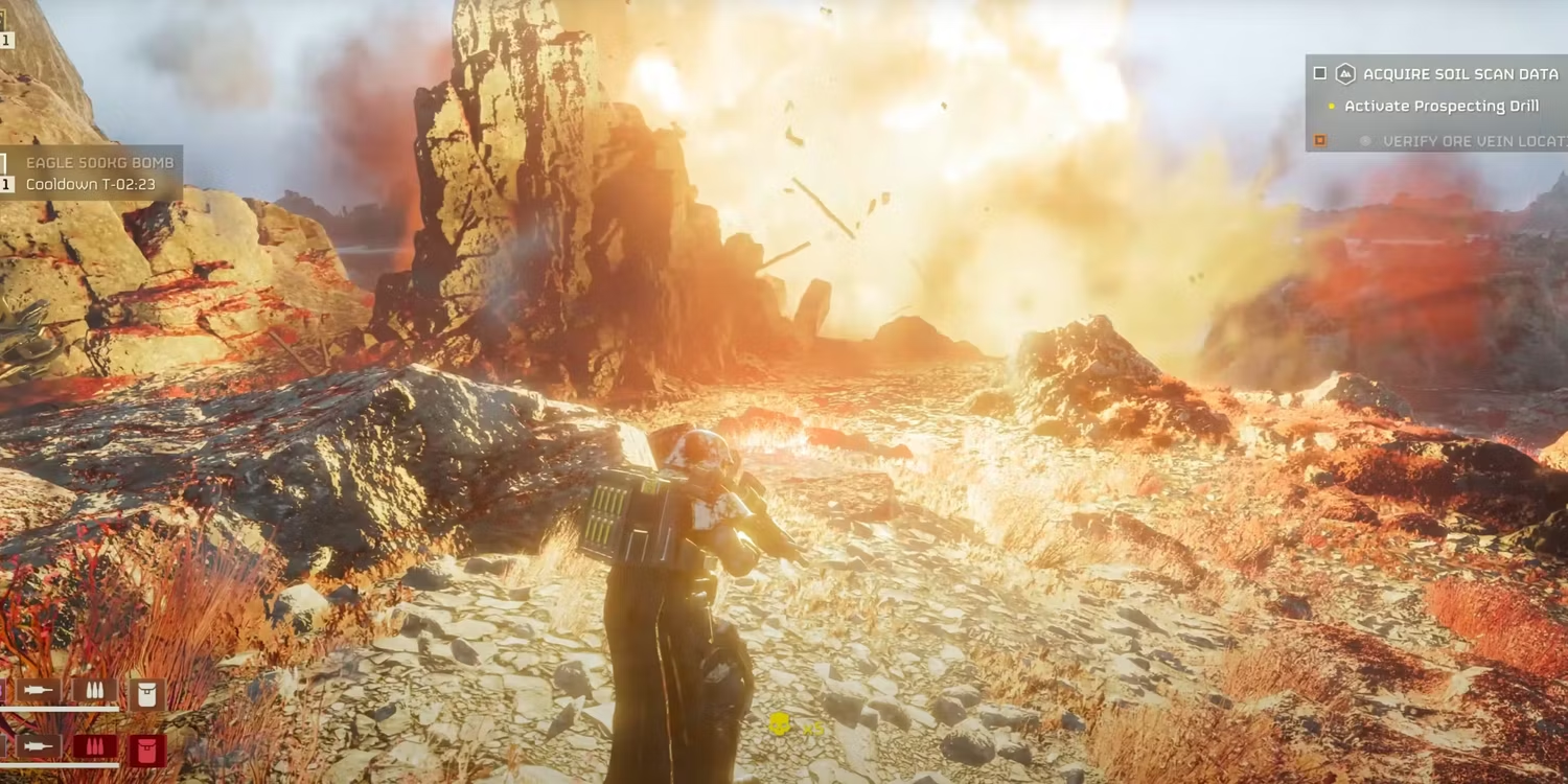 Если вы хотите полностью уничтожить местность, не заботясь о выживших, то бомба Eagle 500KG - это то, что нужно. Все должны убраться с пути ее увеличенного радиуса действия и огромной разрушительной силы, поскольку, как только она будет развернута, смерть последует за ней. Даже если это будет стоить жизни нескольким другим хелдайверам, огромная сила удара и способность очистить территорию говорят в пользу этой стратегии больше, чем ее риски.