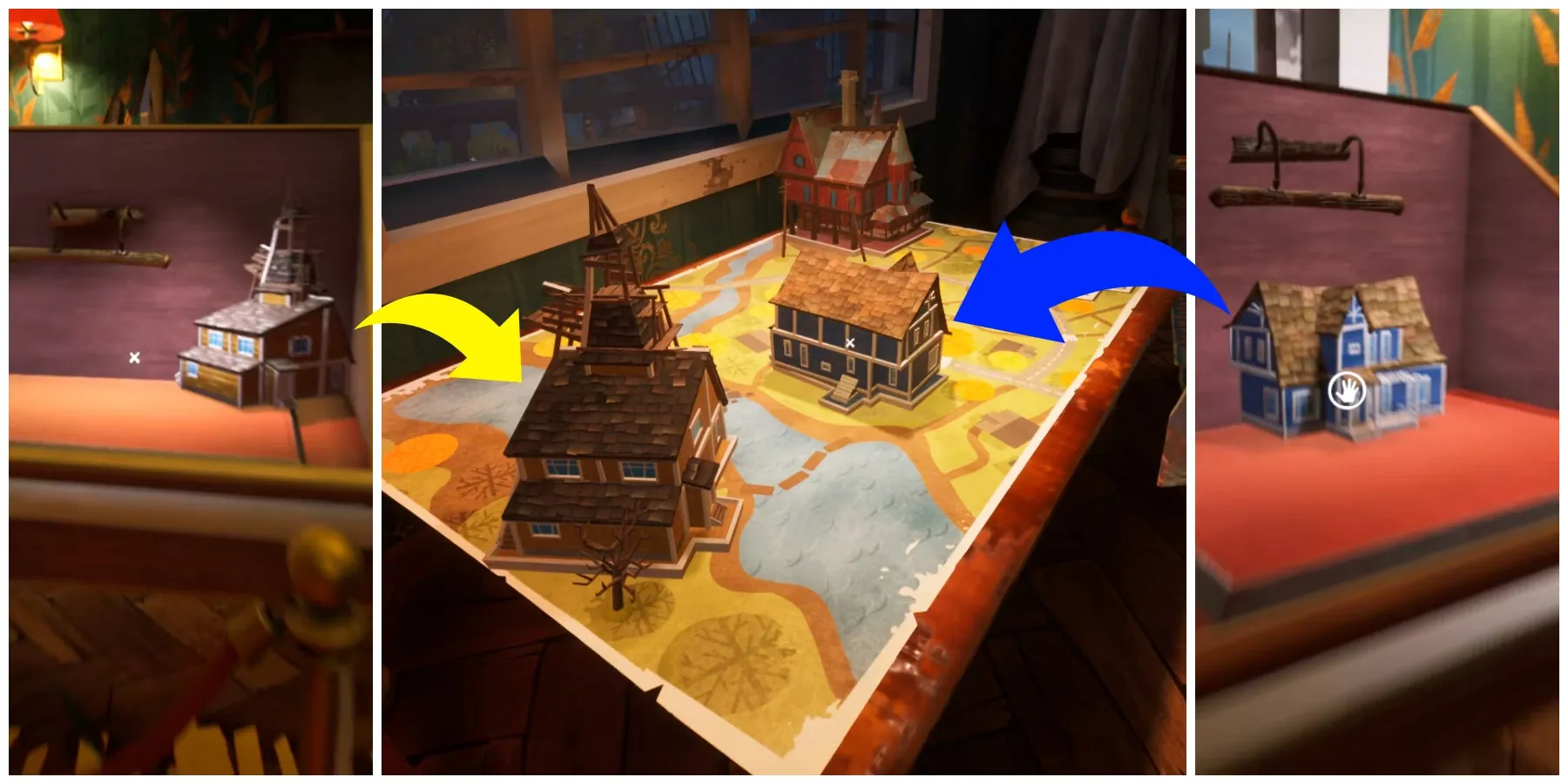 Рыбью голову в перевернутой комнате получить проще всего, поскольку она висит на стене на виду у всех. Чтобы открыть сейф и получить ключ от этой комнаты, игроки должны найти три недостающих дома и поместить их на карте города на свои места. Это приведет к открытию сейфа и получению ключа от комнаты. Три модели расположены по адресам:
