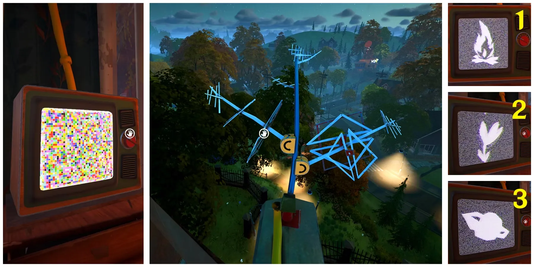 Чтобы исправить телевизионные каналы, игроки должны отправиться на крышу через дверь второго этажа рядом с чердаком после приобретения антенны. Дверь, ведущая на крышу, будет заблокирована деревянной доской. Удалите ее с помощью ломика, затем заберитесь на крышу и установите антенну на место. Сдвиньте обе антенны вверх.