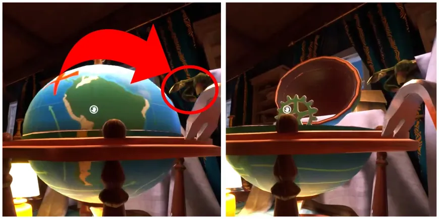 После приобретения желтой шестеренки игроки должны вернуться в книжную комнату, чтобы решить головоломку с глобусом и получить зеленую шестеренку. Чтобы открыть глобус, Квентин должен просто вращать его, пока красная метка X не окажется под пальцем скрытой статуи.