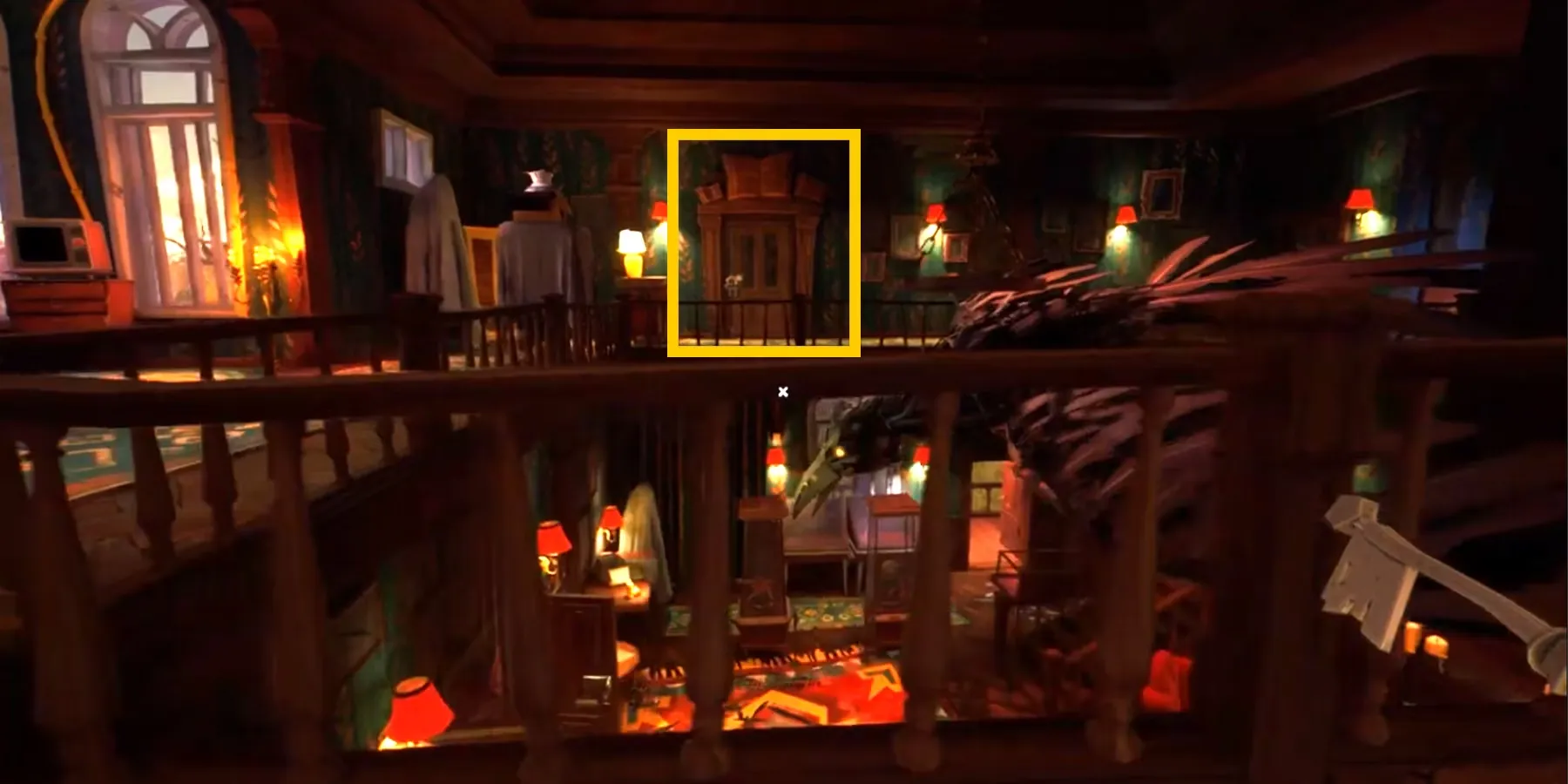 - Откройте скрытый путь между спальней соседа и книжной комнатой, потянув за синюю настенную лампу в дальнем правом углу.