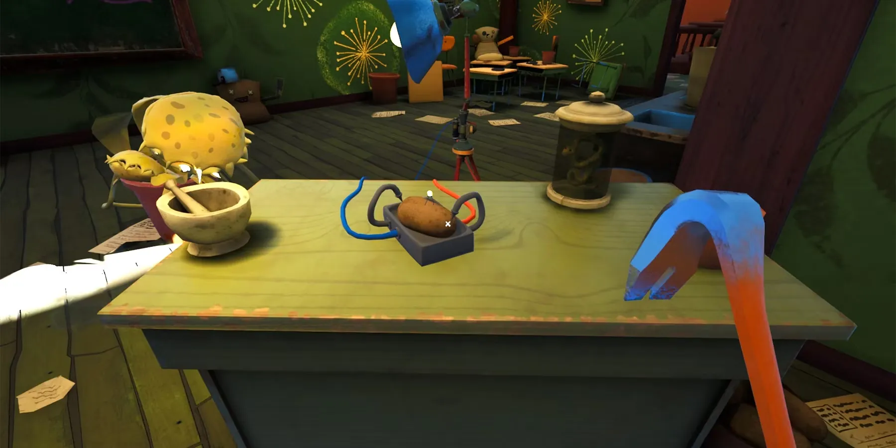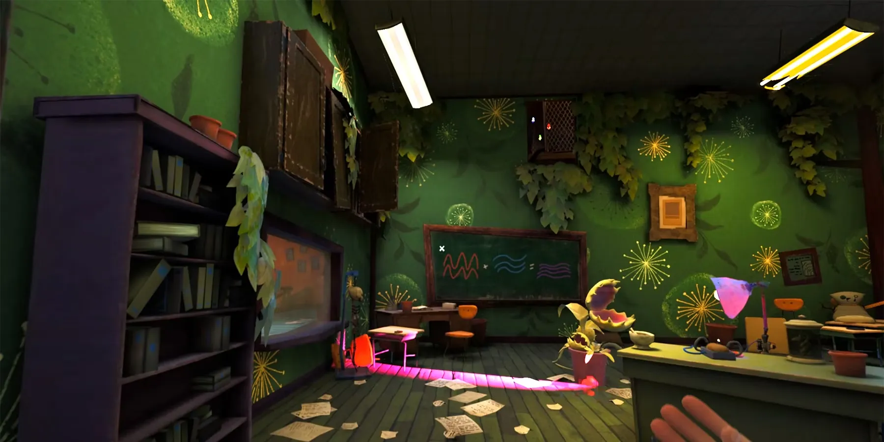 Чтобы решить головоломку химической лаборатории и получить ключ от сарая на заднем дворе в игре Hello Neighbor 2, игрокам необходимо открыть рот венериной мухоловки в лаборатории. Химическая лаборатория находится в главном здании школы на втором этаже, ее охраняет собака дворника. Чтобы открыть венерин рот, игроки должны раздобыть картофельную батарею, а также синий и красный баллончики.