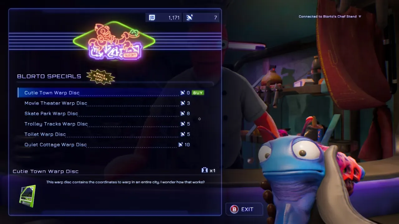 Диски искривления можно найти, как только игрок достигнет определенного игрового прогресса. После выполнения 3 заданий и встречи с мэром Клаггом Джин предложит игроку отправиться в пункт продажи еды Блорто. В киоске Блорто в центре Блим-Сити Блорто предложит секретное меню, в котором можно приобрести диски искривления.