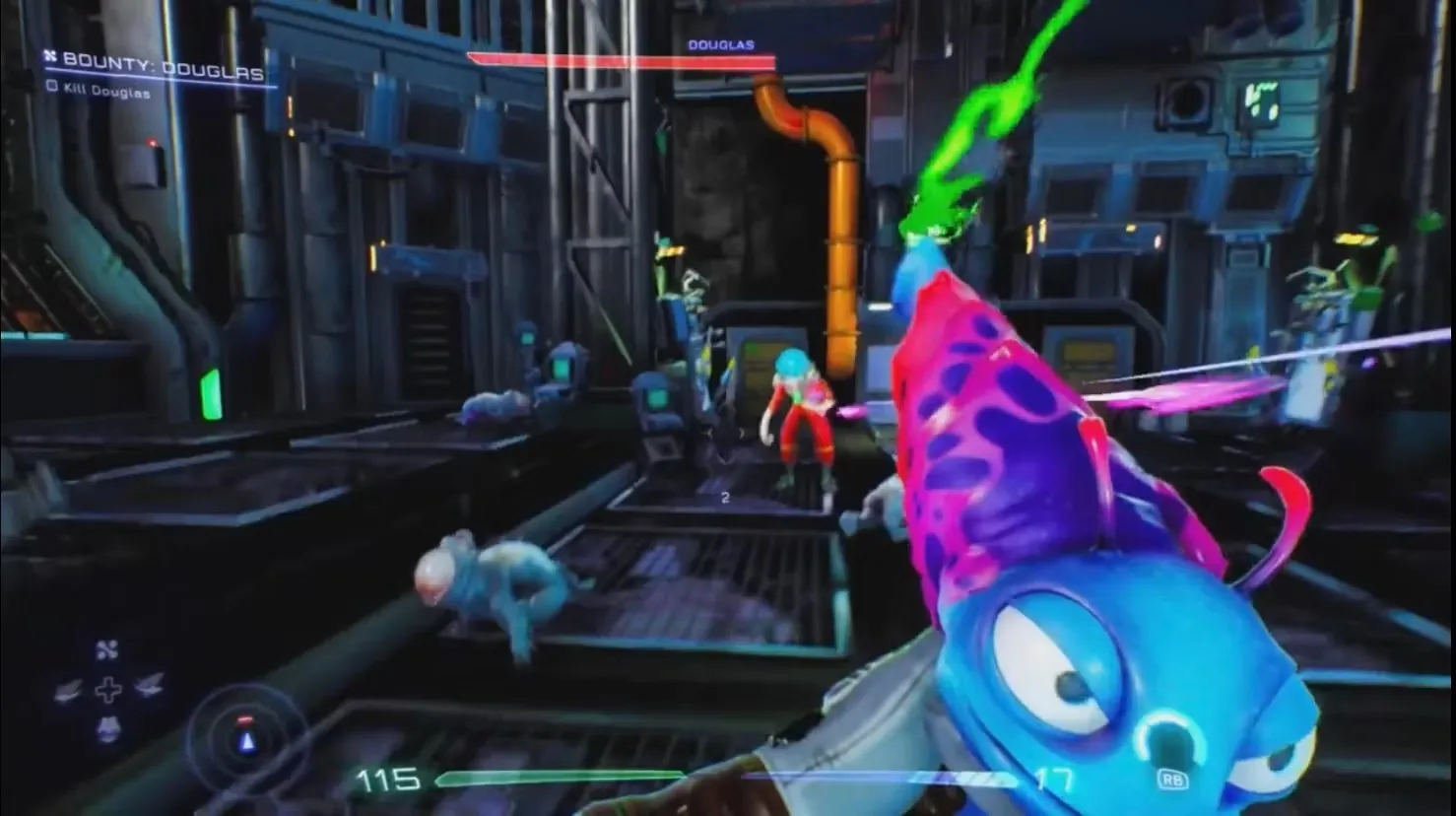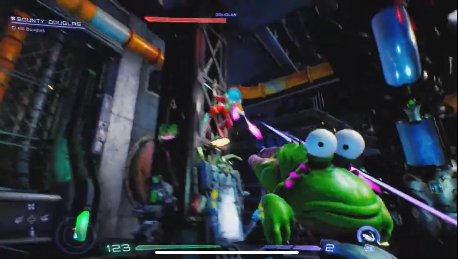 Не ослабляйте натиск и предугадывайте метания Дугласа из стороны в сторону, когда он находится на земле. Когда он движется, вовремя сделайте выстрел из Glob, который на короткое время оглушит его и позволит нанести дополнительный урон.
