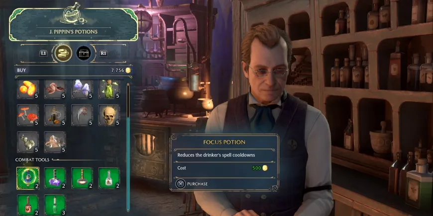 Кроме того, если игроки хотят сварить зелье самостоятельно, рецепты можно найти в магазине зелий Дж. Пиппина, но учтите, что они очень дорогие, так как рецепт зелья фокуса стоит 1 200 галеонов.