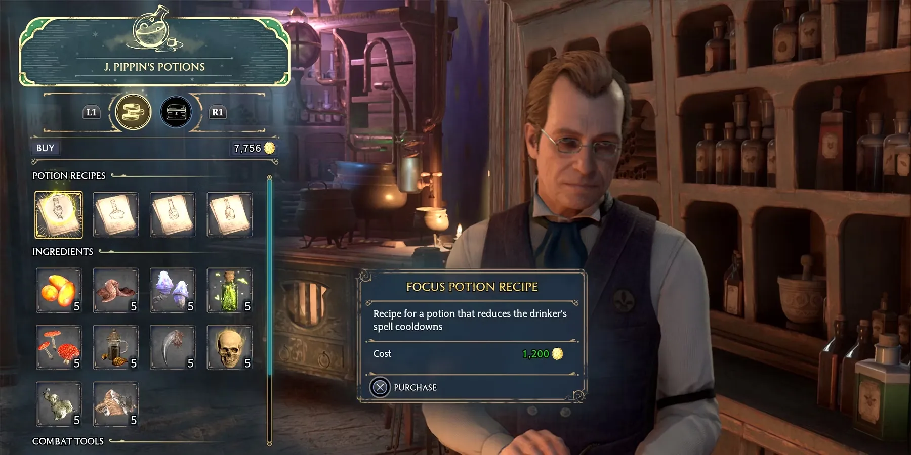 Кроме того, если игроки хотят сварить зелье самостоятельно, рецепты можно найти в магазине зелий Дж. Пиппина, но учтите, что они очень дорогие, так как рецепт зелья фокуса стоит 1 200 галеонов.