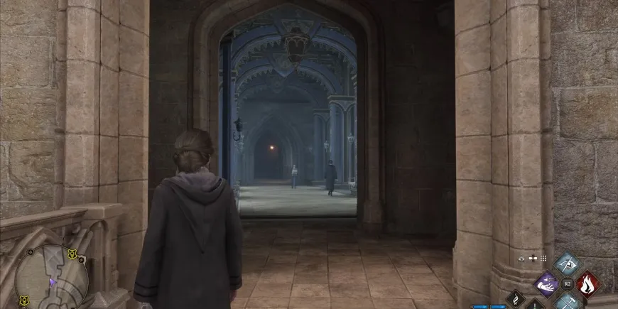 Здесь игроки увидят коридор со статуей Одноглазой ведьмы, которая служит тайным проходом в Хогсмид. Используя Ревелио здесь, игроки получат страницу полевого справочника с записью о ней. Однако, чтобы найти общую комнату Гриффиндора, им придется продолжить путь в проход Одноглазой ведьмы.
