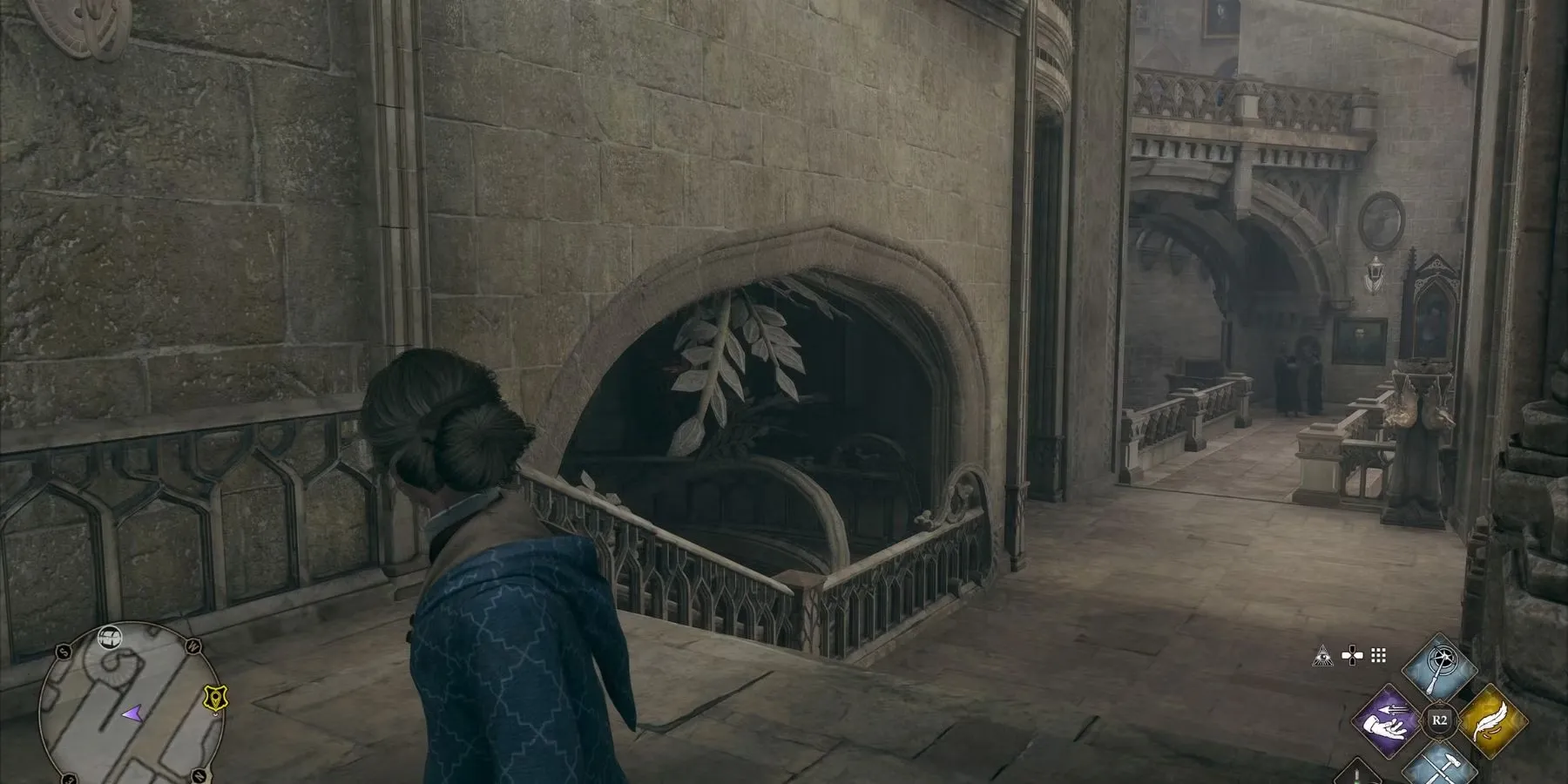 Здесь игроки увидят коридор со статуей Одноглазой ведьмы, которая служит тайным проходом в Хогсмид. Используя Ревелио здесь, игроки получат страницу полевого справочника с записью о ней. Однако, чтобы найти общую комнату Гриффиндора, им придется продолжить путь в проход Одноглазой ведьмы.