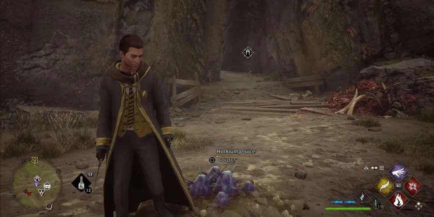 К северу от Хогсмида есть пещера под названием Лощина хорклампа, в которой, что вполне предсказуемо, полно мест для сбора сока хорклампа. Игроки могут найти ее на карте выше, но она не лишена опасностей. В частности, в конце этого подземелья находится могущественный горный тролль, охраняющий большую часть сока хорклампа.