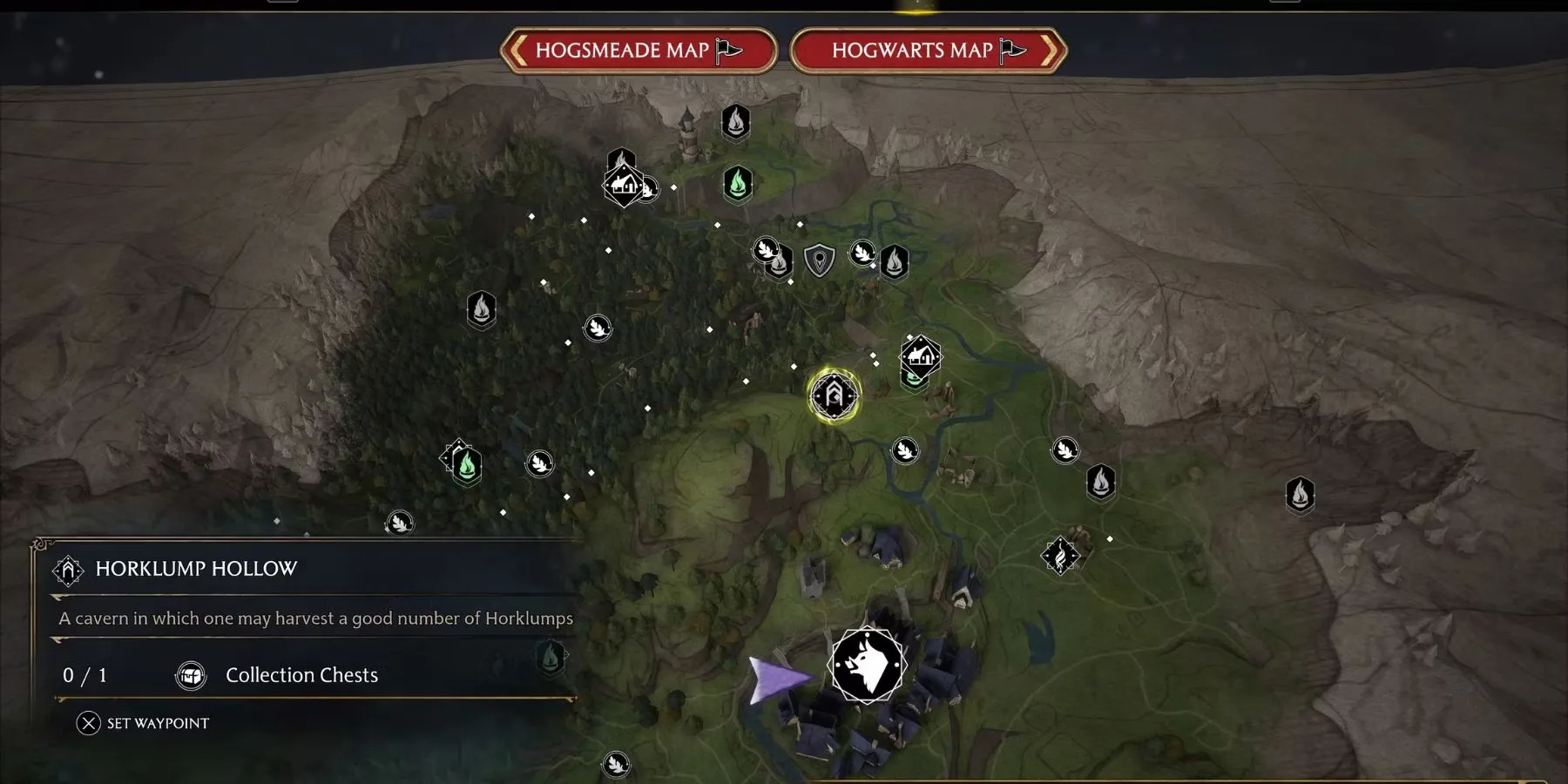 К северу от Хогсмида есть пещера под названием Лощина хорклампа, в которой, что вполне предсказуемо, полно мест для сбора сока хорклампа. Игроки могут найти ее на карте выше, но она не лишена опасностей. В частности, в конце этого подземелья находится могущественный горный тролль, охраняющий большую часть сока хорклампа.