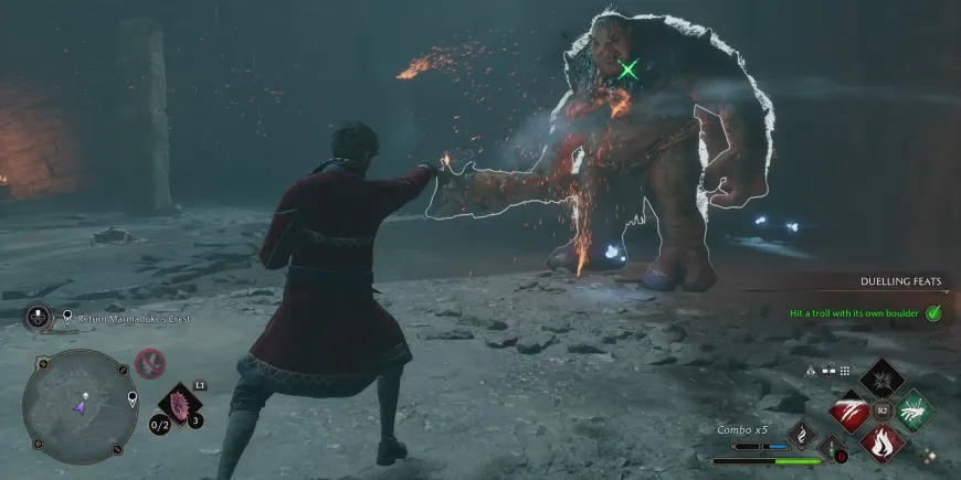 В нижней части склона игроки столкнутся с Рипарианским троллем, который является одним из печально известных врагов Hogwarts Legacy. Несмотря на такой повышенный статус, стратегия победы над ним остается такой же, как и над любым другим троллем в Hogwarts Legacy. Это означает, что нужно уклоняться от его атак зарядом и дубиной и использовать Protego и R1/RB, чтобы поразить тролля его собственными валунами. Как всегда, Древняя магия и другие мощные заклинания могут сделать большую часть тяжелой работы.