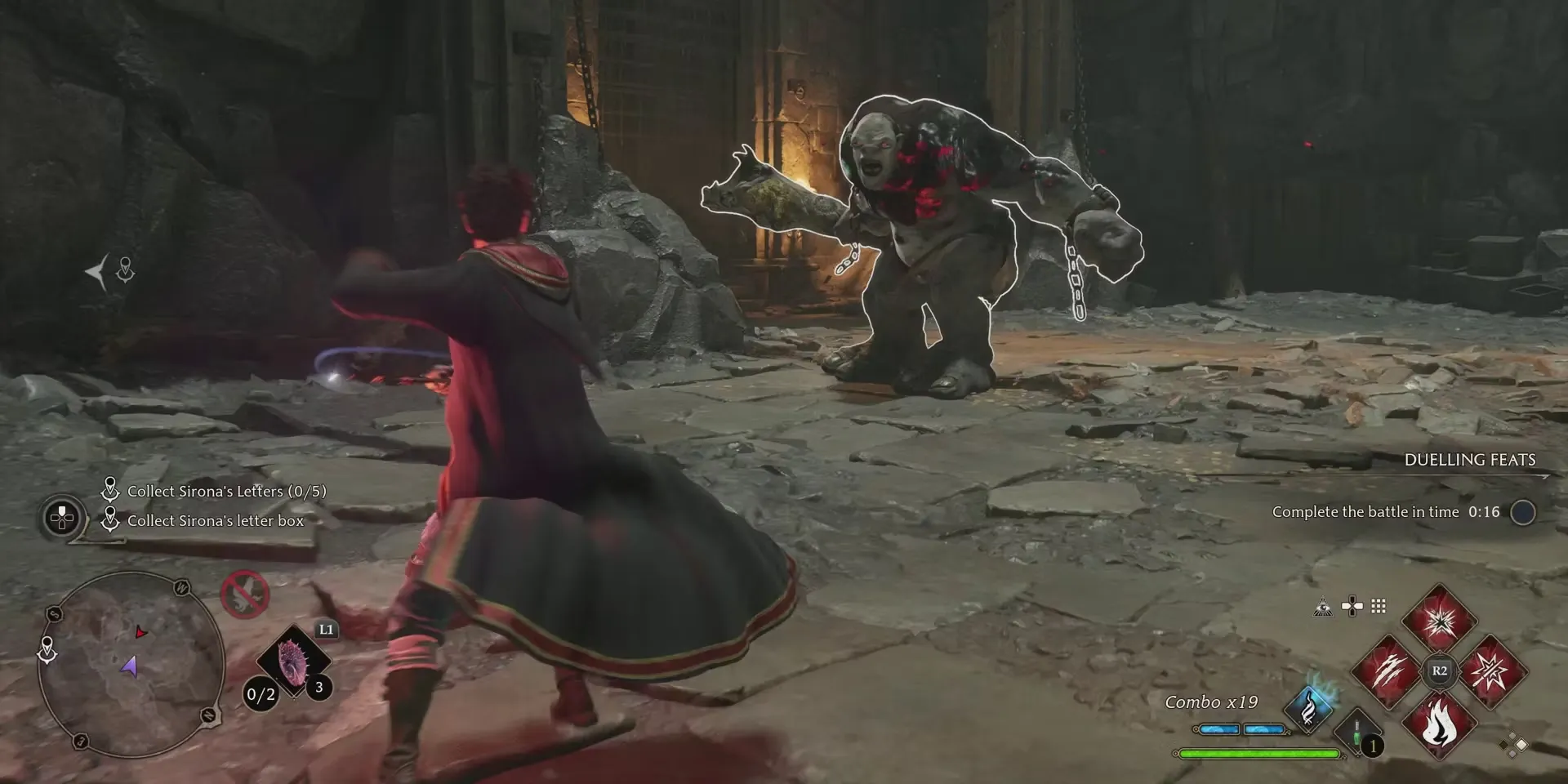 В конце концов, игроки скатятся вниз по склону, у подножия которого находится разъяренный горный тролль. Справиться с ним можно так же, как и с любым другим троллем в Hogwarts Legacy. Игроки должны уворачиваться, чтобы избежать двух неблокируемых атак тролля, и стараться отбрасывать в него валуны, блокируя их с помощью Protego, а затем удерживая кнопку R1/RB, когда появится соответствующий запрос. Игроки также должны использовать R1/RB, чтобы бросить в тролля все валуны, расположенные за пределами зоны боя, и при необходимости использовать Древнюю магию.