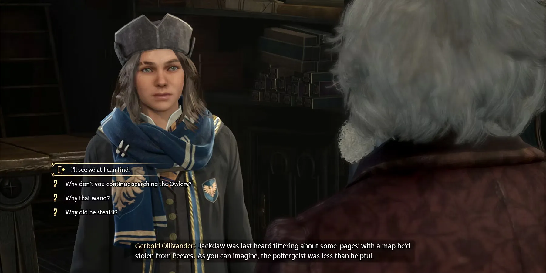 Чтобы вызвать побочный квест "Призрак нашей любви" в Hogwarts Legacy, пройдите основные задания, пока не станет доступна реликвия Олливандера. Мастер палочек просит игроков вернуть украденную палочку и направляет их в Совятник, поскольку укравший ее человек оставил там головоломку.