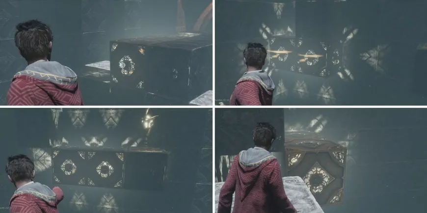Отсюда игроки Hogwarts Legacy должны ударить по вращающейся сфере обычным заклинанием, чтобы вернуть положение подвижных блоков, а затем использовать Accio, чтобы перетянуть блоки к стене возле выхода. Следующим шагом будет использование Depulso, чтобы оттолкнуть блоки к стене справа, противоположной той, у которой стоит игрок, а затем с помощью Accio потянуть их вправо так, чтобы они коснулись блока с вращающейся сферой. Затем нужно просто использовать Accio, чтобы притянуть блоки к месту, где стоят игроки, а затем использовать Depulso, чтобы придвинуть их к стене возле выхода.