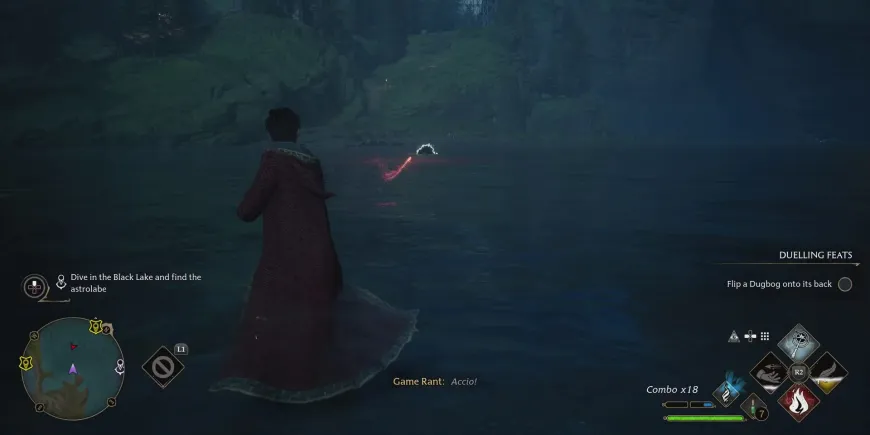 Грейс попросит помочь найти потерянную астролябию ее семьи, которая находится в воде к северо-востоку от причала. Чтобы добраться до нее, игрокам Hogwarts Legacy нужно будет просто прыгнуть в воду, а затем проплыть в направлении области, отмеченной на их карте. В воде им может встретиться один или два Дагбога, но поскольку игроки не смогут использовать свои палочки во время плавания, лучше обходить этих врагов стороной или доставать их с мелководья.