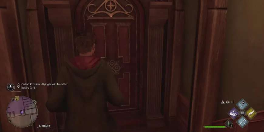 После разговора с Крессидой в Центральном зале, чтобы начать побочный квест, игроки должны направиться прямо в библиотеку, куда можно попасть, выйдя из помещения через одну из дверей на западе. Оказавшись внутри, игроки должны использовать Ревелио, чтобы выделить все ближайшие парящие книги, а затем применить Accio, чтобы призвать их, обязательно проверяя каждый проход, чтобы не пропустить ни одной. Здесь также есть несколько летающих страниц полевого справочника, поэтому игрокам следует взять их, если они еще не сделали этого.