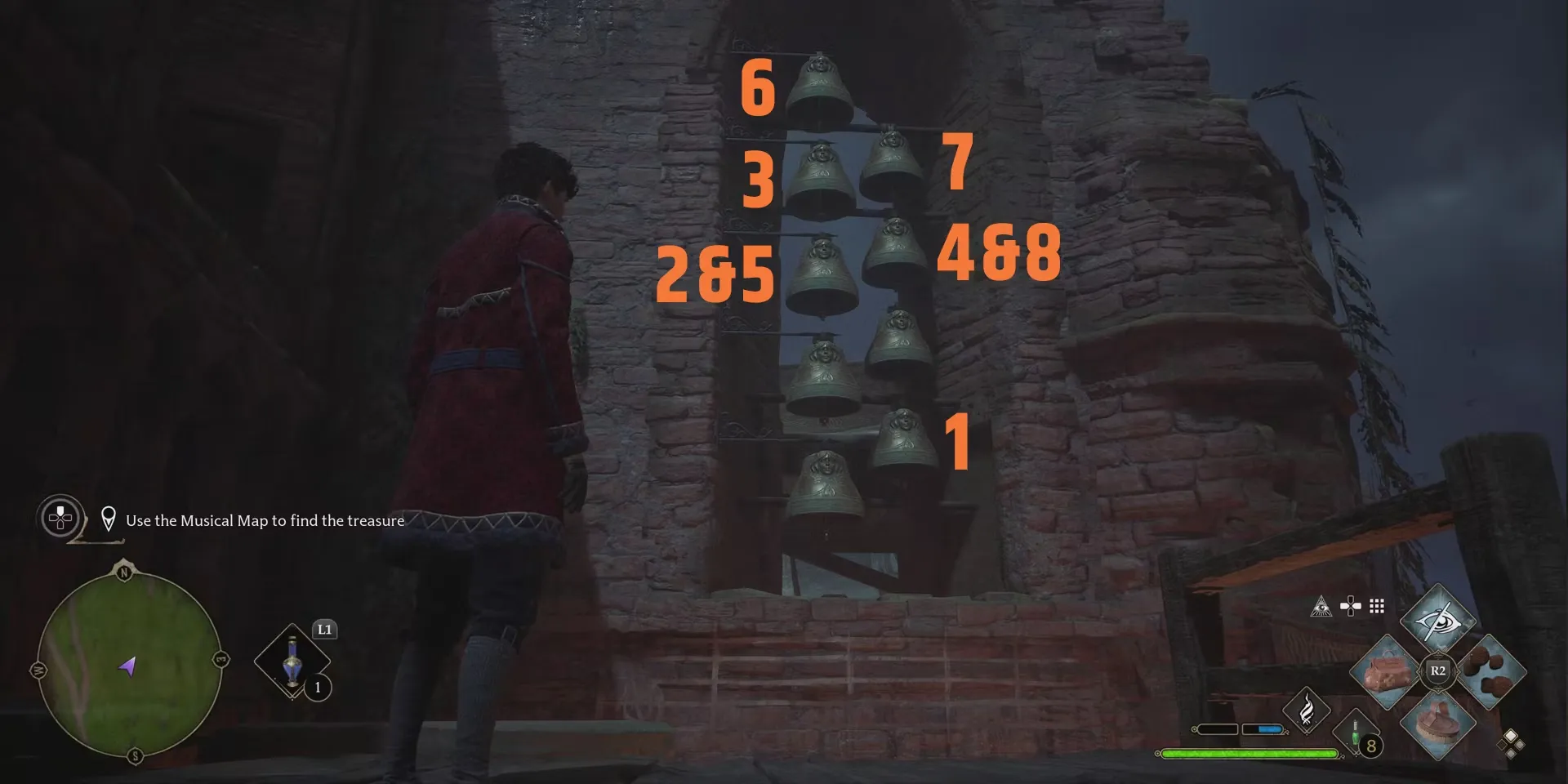 Когда дело доходит до использования Музыкальной карты, игрокам следует отправиться в замок Клагмар, который находится к востоку от мыса Манор. Там им нужно уничтожить всех врагов, а затем отыскать башню с девятью колоколами. Чтобы завершить побочный квест, нужно просто ударить по этим колоколам обычным заклинанием в следующем порядке: