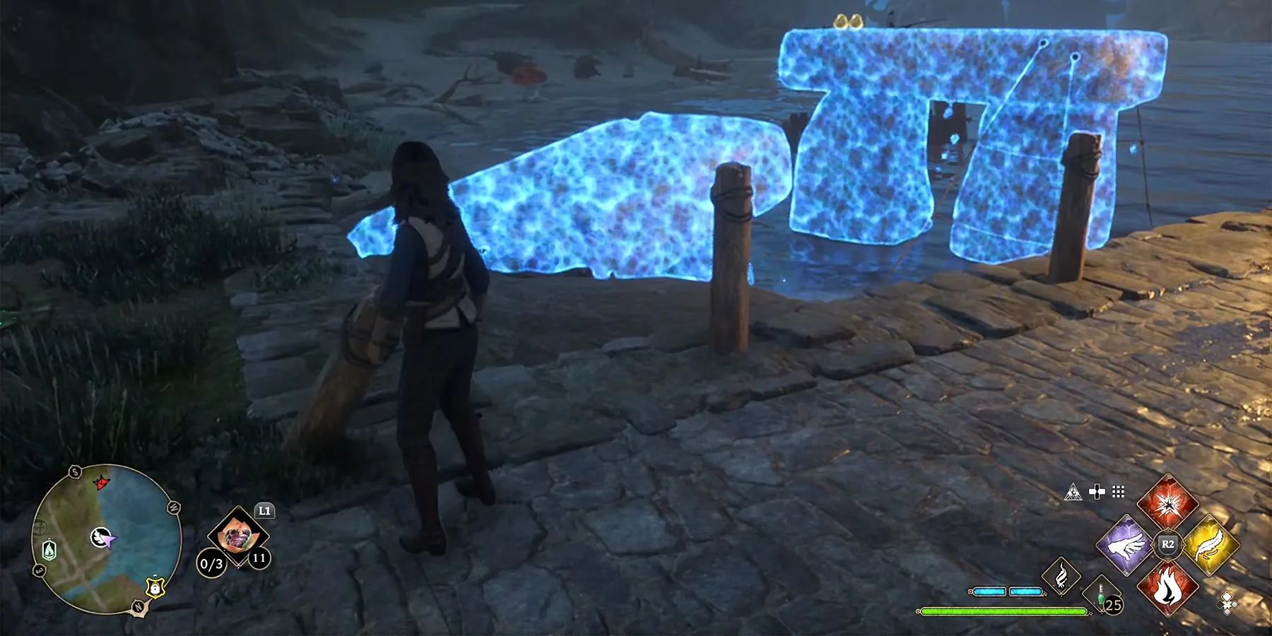 Появится несколько светлячков, и игрокам нужно будет направить их с помощью Люмоса к столбам Лунного камня. Всего столбов три, и игроки могут использовать заклинание Revelio, чтобы быстрее их найти.