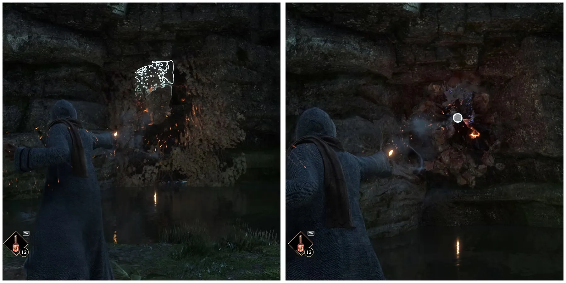 Чтобы расчистить путь, примените Confringo, чтобы сжечь листья, а затем используйте его снова, чтобы разрушить каменные столбы. Кроме того, игроки могут дважды бросить Бомбарду на одну и ту же цель, чтобы уничтожить объект.