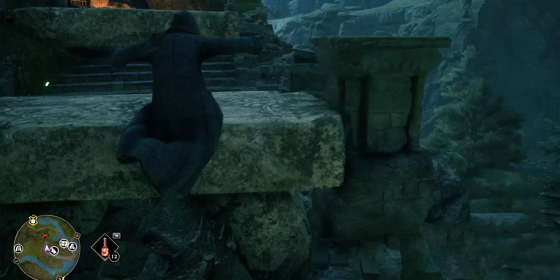 Чтобы пройти это испытание Мерлина в Hogwarts Legacy, игрокам нужно перепрыгнуть с одной платформы на другую, не касаясь пола и не падая.