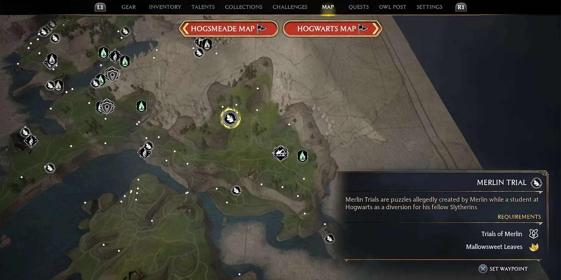 Испытания Мерлина в Крагкрофтшире находятся на некотором расстоянии друг от друга. Поэтому игрокам может понадобиться призвать метлу или любое животное, чтобы быстрее добраться до других испытаний.