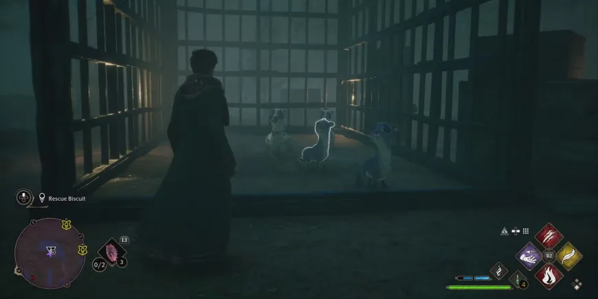 Браконьеры здесь могут быть немного сложными из-за их количества и загроможденности лагеря, хотя использование R1/RB для метания бочек и камней может помочь уравнять шансы. Когда игроки разберутся со всеми браконьерами, им следует пройти к большой клетке, а затем применить Алохомора, чтобы освободить заключенных в ней лунных скальвов. В этот момент все становится интересным.