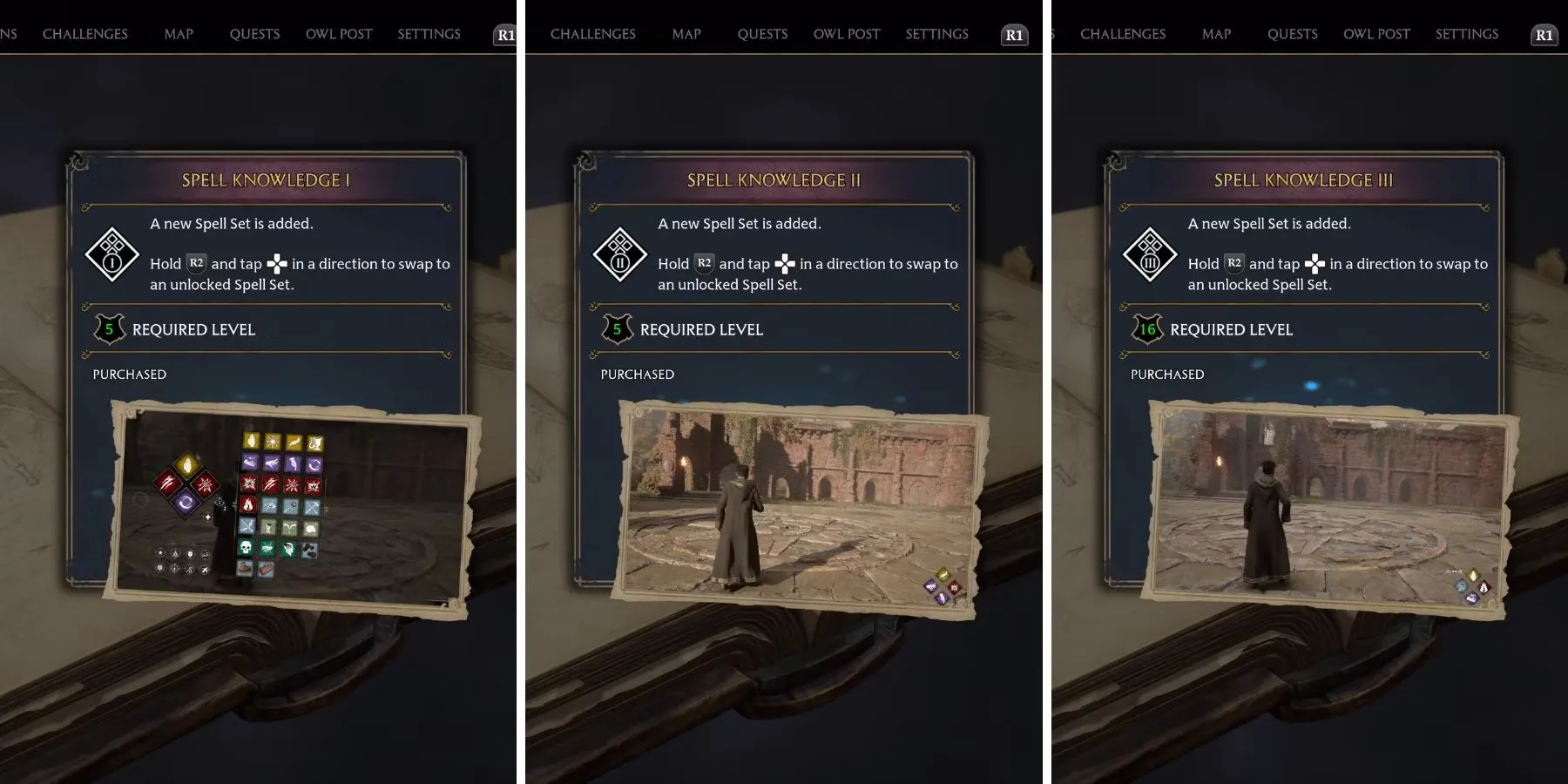 В частности, в Hogwarts Legacy игрокам предстоит изучить 31 заклинание, поэтому легко понять, что одного набора заклинаний с четырьмя слотами недостаточно. Даже разблокировав все четыре набора заклинаний, игроки не смогут использовать все известные им заклинания одновременно, но переключать их достаточно просто. Новые наборы заклинаний можно получить, потратив очки талантов.